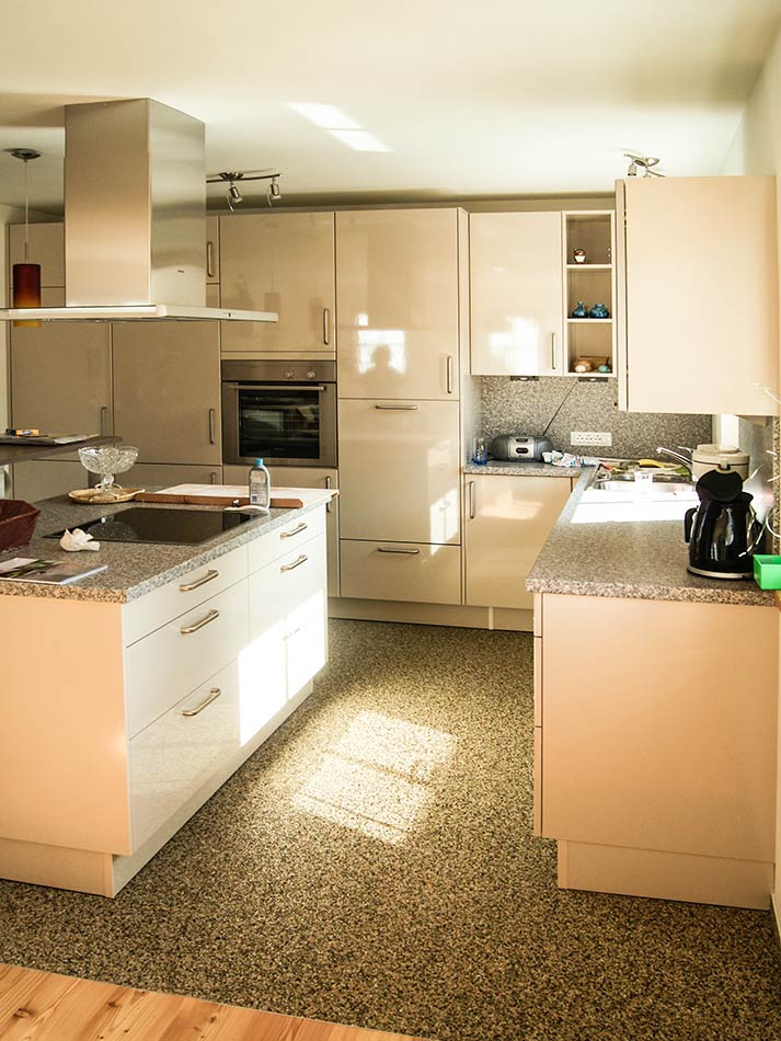 Apropos Fußbodenheizung: DeBoWa Natursteinteppiche sind gute Wärmeleiter, weil sich die Luft zwischen den Kieskörnern schnell erwärmt und die Poren die Wärme sehr gut durchlassen. Sie fühlen sich deshalb warm und behaglich an. Gute Kombination: Natursteinteppich und Fußbodenheizung.