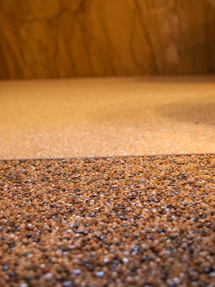 DeBoWa Natursteinteppiche sind für den Außenbereich bestens geeignet. Hitze, Kälte und Frost können Natursteinen nichts anhaben. Sie sind frostsicher und rutschhemmend. Durch die offenporige Struktur kann Wasser immer ablaufen. Und die Beläge sind elastisch – es entstehen keine Risse, auch nach Jahren.