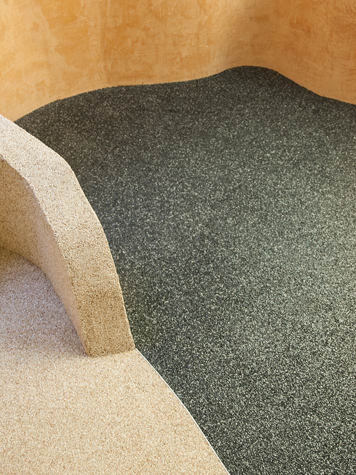Natursteinteppiche eignen sich hervorragend, um Nassräume auszukleiden. Sie sind rutschhemmend, unempfindlich gegenüber Feuchtigkeit, leicht zu reinigen … und fühlen sich warm an.